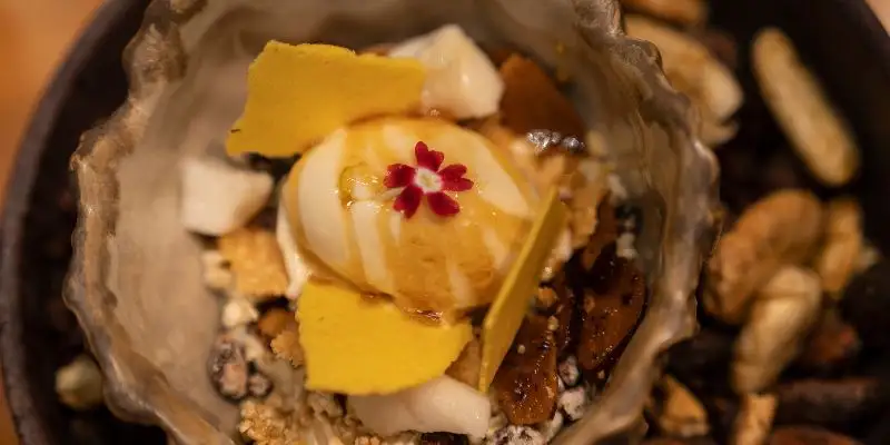Arroz cremoso de mariscos, ceviche inca, chicharrón de pesca blanca, papas huancaína, acevichado de camarones con chalaquita como topping.